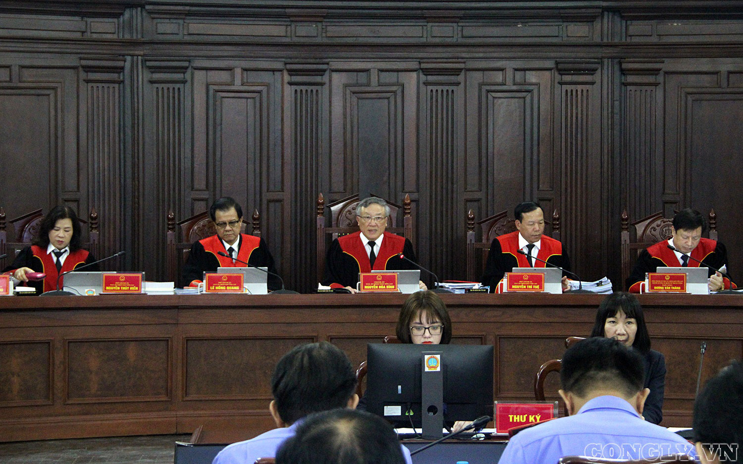 Chánh án TAND Tối cao Nguyễn Hòa Bình tại phiên giám đốc thẩm vụ án Hồ Duy Hải. Ảnh: Báo Công lý