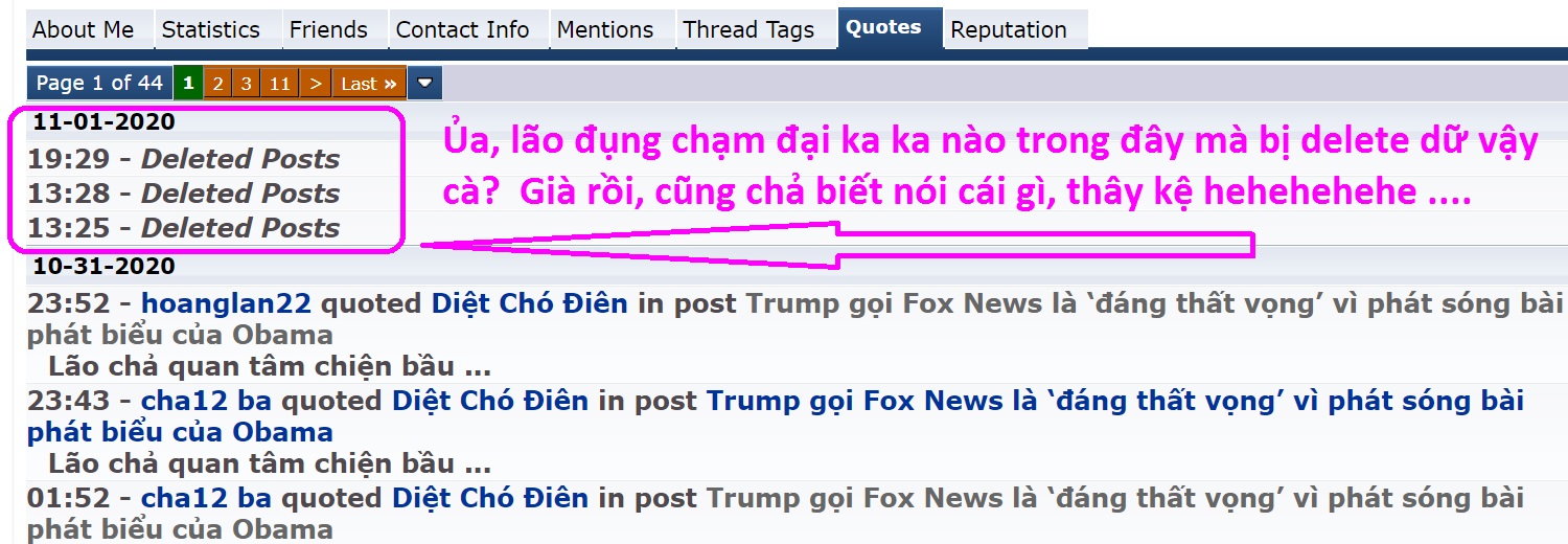 Có thể 3 cái đó là 3 cái mà danick làm mâ'y nick quote chửi bạn mà hắn bị ban và 3 post đó bị xóa .