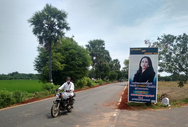 Những ngày cuối tháng 10, ngôi làng rợp bóng cây xanh ở phía nam Ấn Độ này được trang trí bằng những bức áp phích cổ vũ cho bà Harris.