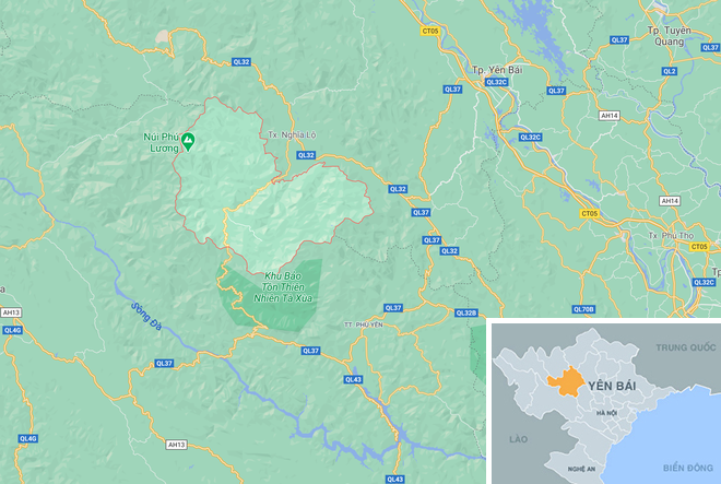 Án mạng xảy ra tại huyện Trạm Trấu, tỉnh Yên Bái (vùng khoanh đỏ). Ảnh: Google Maps.