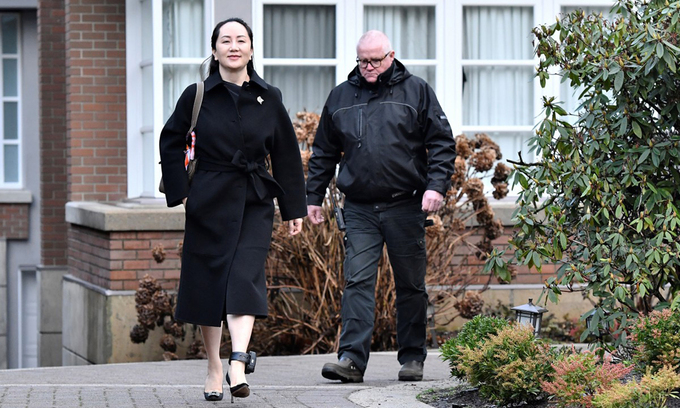 Bà Mạnh Vãn Chu (trái) rời nhà tới tòa ở Vancouver, Canada hồi tháng 1/2020. Ảnh: Reuters.