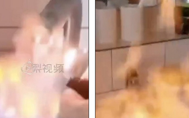 Cảnh tượng đáng sợ đã xuất hiện tại một thành phố ở Đông Bắc Trung Quốc khi nước sinh hoạt chảy từ vòi chỉ cần mồi lửa đã bốc cháy lớn.