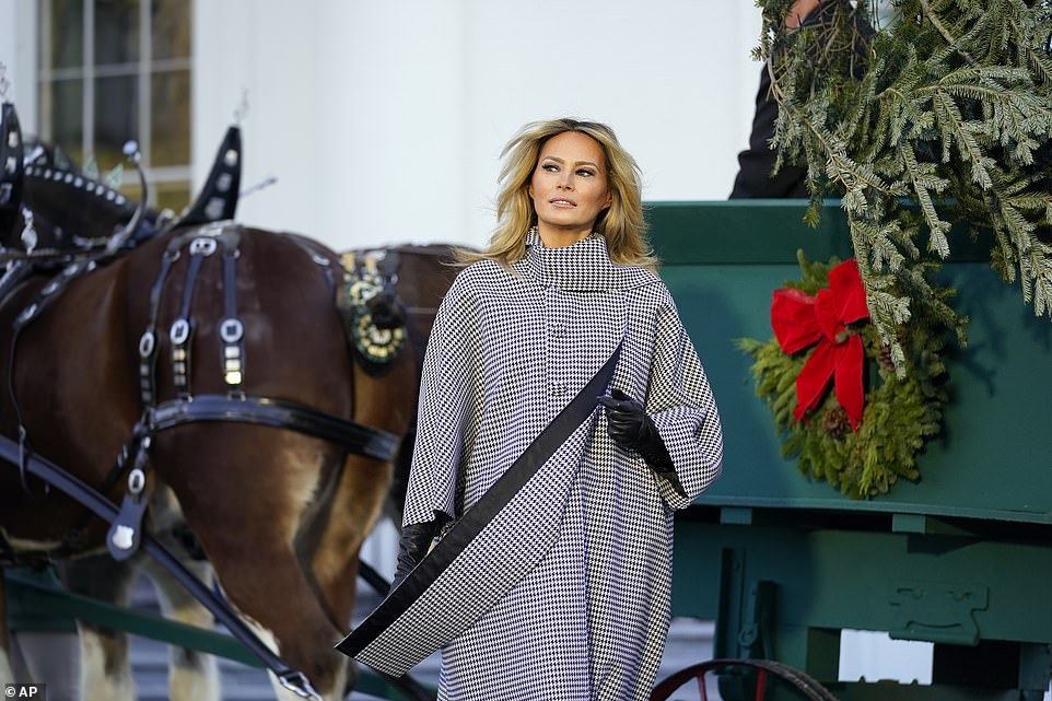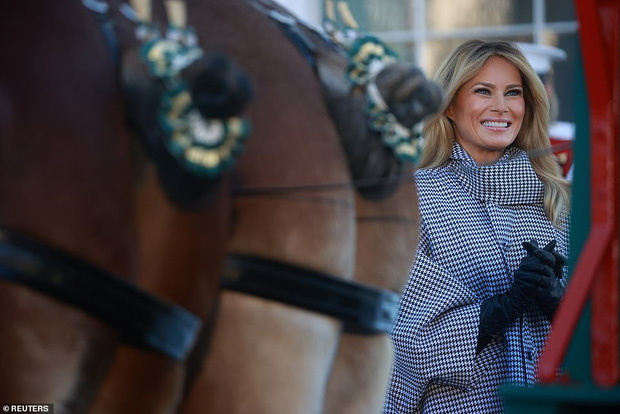 Những bức hình được chia sẻ trên truyền thông cho thấy, Đệ nhất phu nhân Mỹ tươi cười vui vẻ, vẫy tay chào mọi người và nói "Chúc mừng Giáng sinh". Đằng sau bà là cây thông khổng lồ được chở bằng chiếc xe kéo to. Đây cũng là hoạt động mở đầu cho một chuỗi các hoạt động cuối năm tại Nhà Trắng.