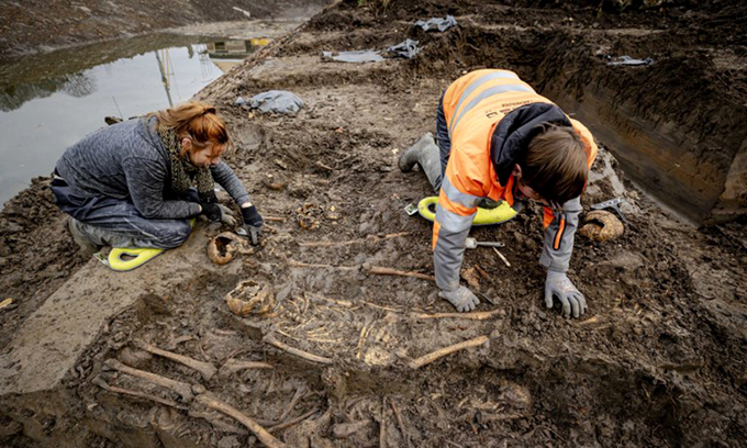 Mộ tập thể gồm ít nhất 20 hài cốt, nhiều hài cốt xếp chồng lên nhau, phần lớn là đàn ông từ 15 - 30 tuổi hàng trăm năm tuổi mới được phát hiện ở Hà Lan.