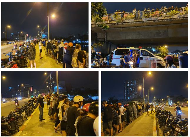 Vụ việc khiến không ít người dân tập trung tại cầu Kinh (Thanh Đa) để theo dõi. Nhiều người còn quay clip, livestream về vụ việc khiến giao thông qua khu vực này ùn ứ nhẹ.