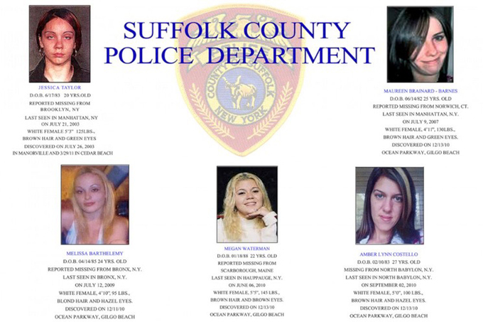 Cuộc điều tra quy mô và hợp tác giữa các quận của New York tập trung vào các vật chứng do đa số nạn nhân đều có mối quan hệ phức tạp. Mãi đến tháng 12/2011 (hơn một năm rưỡi sau cuộc gọi cầu cứu) của Shannan Gilbert, thi thể cô mới được tìm thấy trong đầm lầy cách nơi mất liên lạc khoảng 2 km.