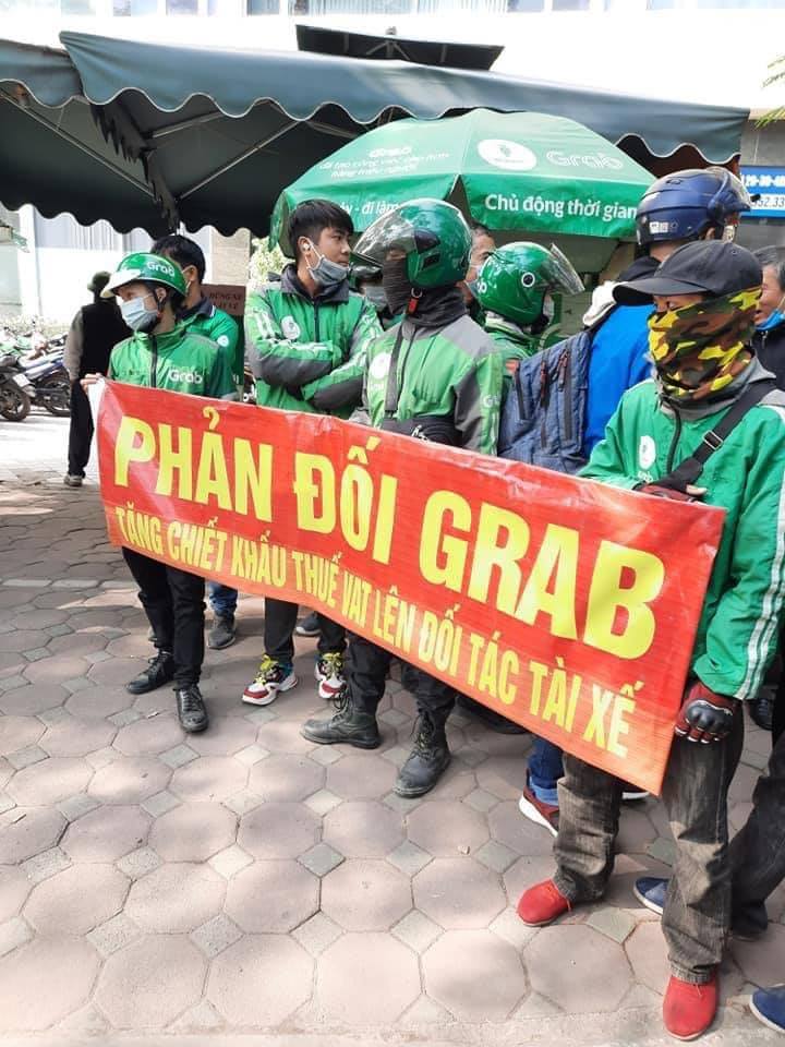 Sáng nay, 07/12, hàng trăm tài xế Grab đã tập trung phía bên ngoài tòa nhà trụ sở Grab trên đường Duy Tân, Hà Nội để phản đối mức khấu trừ mới, gần 33% sau khi áp dụng thuế GTGT trên mỗi cuốc xe.
