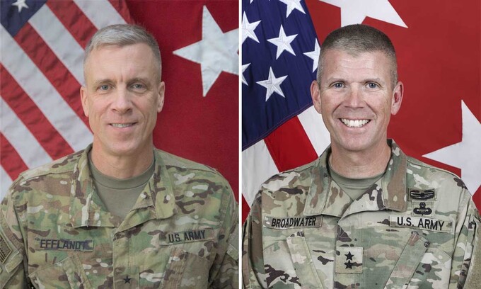Thiếu tướng Scott Efflandt (trái) và thiếu tướng Jeffery Broadwater (phải). Ảnh: US Army.