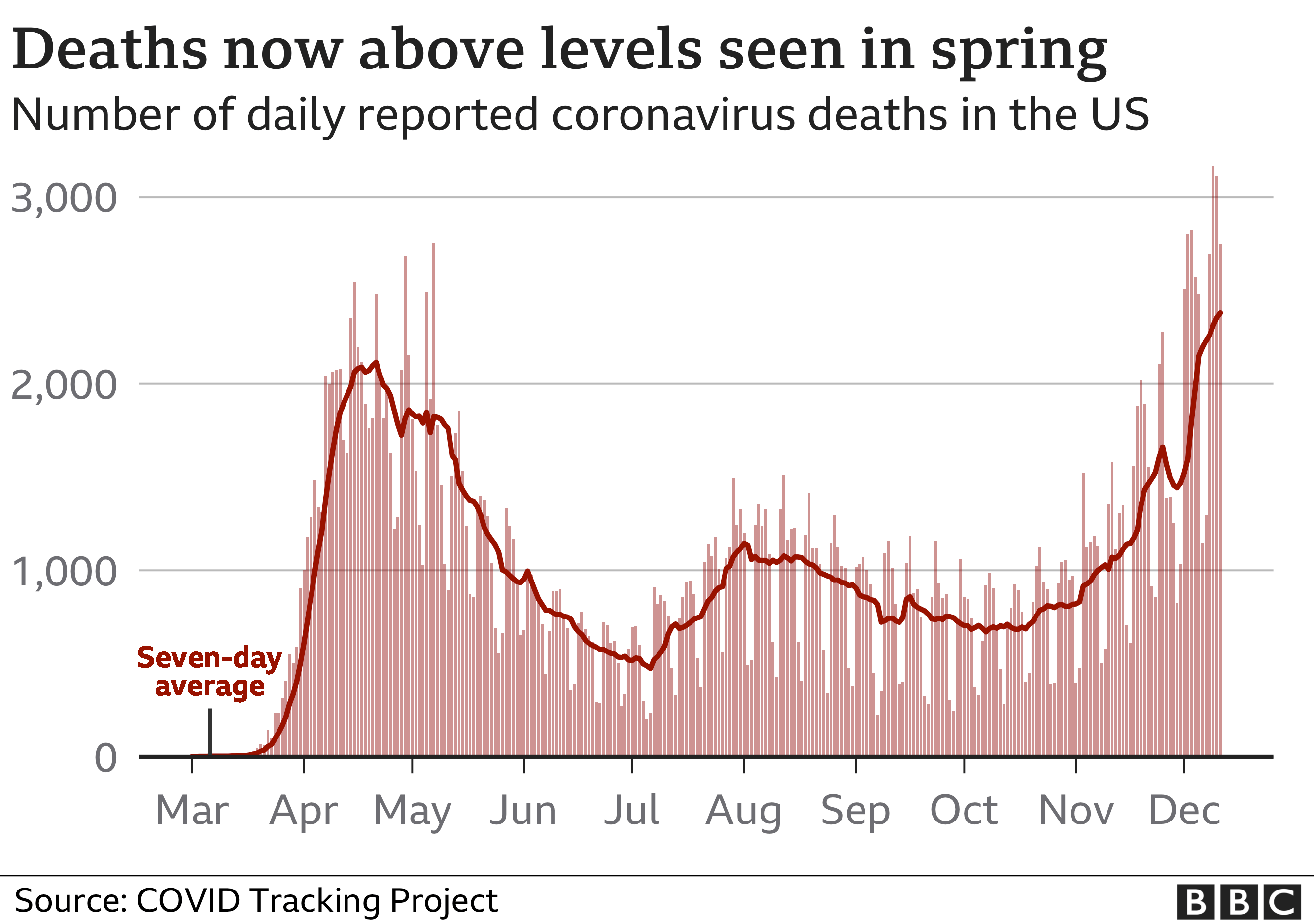 Số ca tử vong do virus corona tăng mạnh kể từ tháng 11 tại Mỹ, với mức tăng kỷ lục thế giới hàng ngày là 3.309 ca được báo cáo hôm thứ Bảy.