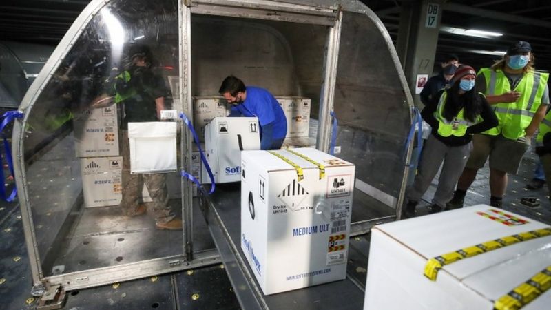 Những hộp chứa vaccine của Pfizer đang được chuyển đi khắp nước Mỹ