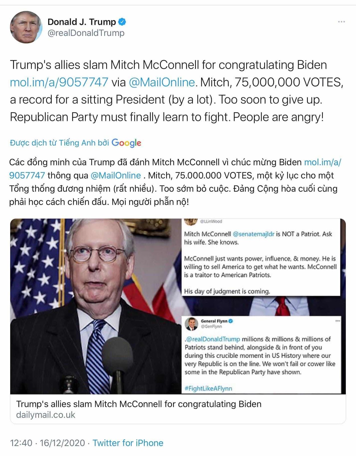 Đòn chính diện của Ông Trump lúc này là truy quét tội phạm bầu cử khi thời điểm về mặt Pháp lý chín muồi . Đây chính là QUÀ của Ông Trump sẽ đưa cho Quốc Hội vào ngày 6/1.