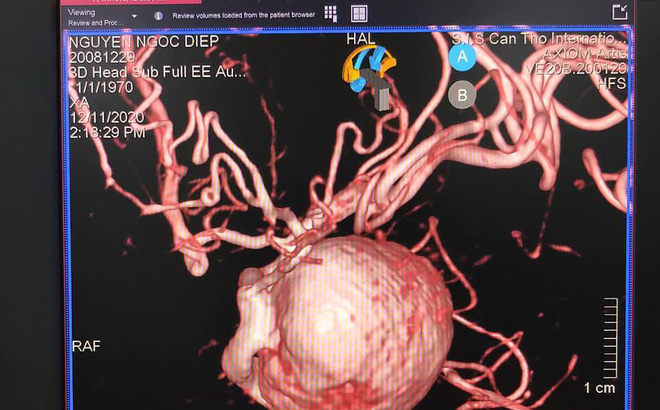 Khi đi khám tại BV Đột quỵ, Tim mạch Cần Thơ, bác sĩ cho chụp MRI phát hiện một “bom máu” trong đầu có thể vỡ bất cứ lúc nào. Lúc này, bà D. rất sốc nhưng thấy mình may mắn vì biết sớm được can thiệp kịp thời.