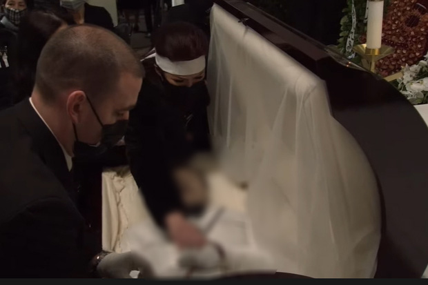 Trước khi quan tài đóng nắp, ca sĩ Phương Loan đã đứng bên cạnh lẳng lặng theo dõi, đôi mắt lộ rõ vẻ u buồn. Khi quan tài sắp đóng lại, cô đã đưa tay ra vỗ về linh cữu của chồng, nhẹ nhàng đặt lên trái tim cố nghệ sĩ rồi chạm vào đôi bàn tay đang ôm chặt kỷ vật của chồng lần cuối. Khoảnh khắc này ngay lập tức khiến nhiều người vô cùng xúc động và xót xa.