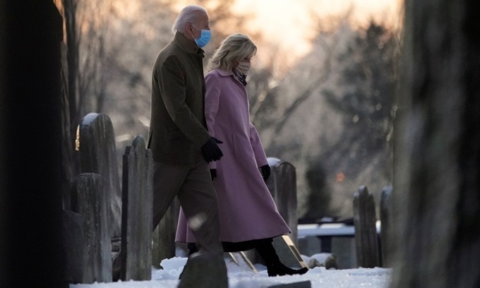 Tổng thống đắc cử Mỹ Joe Biden cùng vợ thăm mộ người vợ đầu và con gái Naomi ở Delaware hôm 18/12. Ảnh: Reuters.
