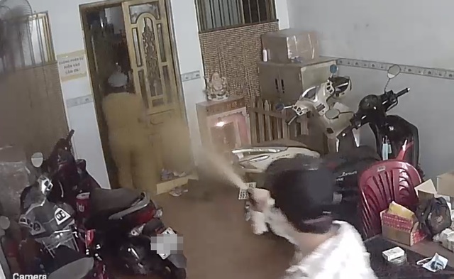 Lúc này, bà M. hô hoán và bỏ chạy vào trong. Nghe tiếng kêu la, ông T.T.T. (57 tuổi) đang ngủ vùng dậy chạy ra tri hô thì bị nam thanh niên này xịt hơi cay vào mặt.