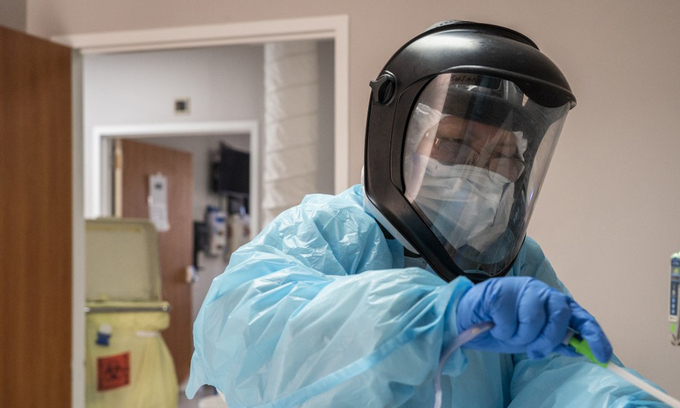 Nhân viên y tế chăm sóc cho bệnh nhân nhiễm nCoV trong phòng điều trị tích cực tại một bệnh viện ở Houston, Texas, hôm 25/12. Ảnh:AFP.