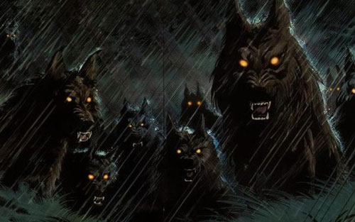 Tranh minh họa đàn chó săn của Nguyễn Xí.