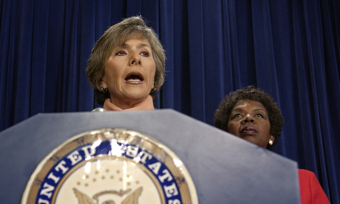 Thượng nghị sĩ Barbara Boxer (trái) và hạ nghị sĩ Stephanie Tubbs Jones trả lời báo chí về việc phản đối chiến thắng ở Ohio của George W. Bush tại Tòa nhà Quốc hội Mỹ, Washington, ngày 6/1/2005. Ảnh: Reuters.