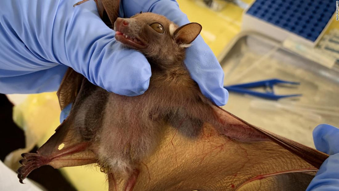 Tại một phòng thí nghiệm ở Mbandaka, các nhà khoa học chuẩn bị lấy mẫu máu từ một con dơi bắt được trong rừng. Ảnh: CNN