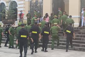 Khoảng 13h20, cảnh sát dẫn giải các bị cáo từ trại tạm giam đến tòa án. 10 phút sau, HĐXX tiến hành tuyên án.