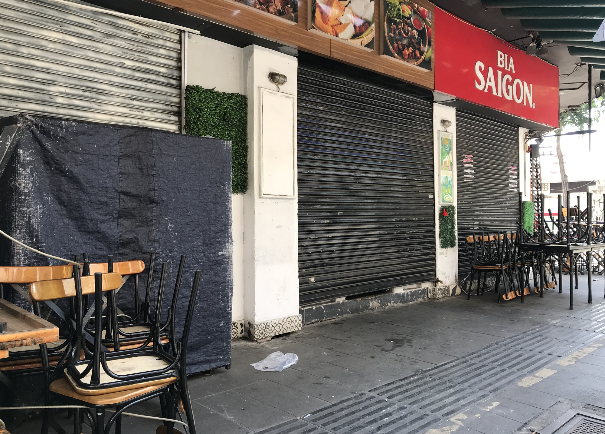 Tại "phố Tây" Bùi Viện (quận 1), hầu hết quán bar, vũ trường đều đã đóng cửa. Một số bar quyết định dồn lực cho Tết này nên trang trí Tết rất hoành tráng, bởi hàng năm, doanh số bán Tết tăng gấp 2-3 lần, nhưng nay đã cửa khóa im ỉm.