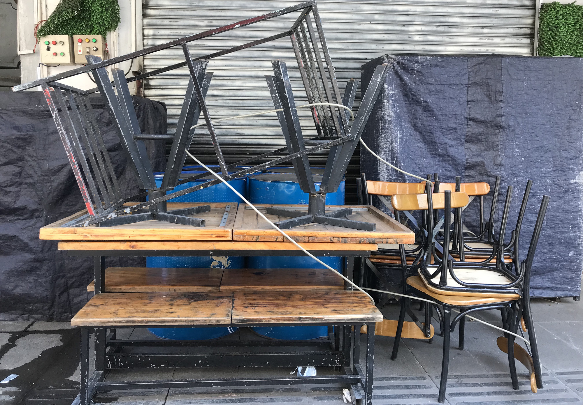 Bàn ghế xếp gọn gàng để "ăn Tết" đến khi có thông báo mới. Ảnh: Hồng Phúc