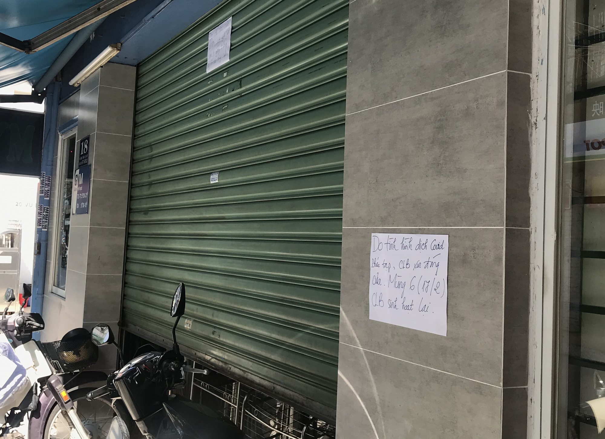 Một phòng gym tại quận Bình Thạnh thông báo đóng cửa từ sáng 28 Tết. Ảnh: Hồng Phúc
