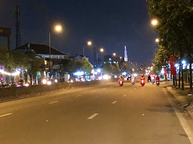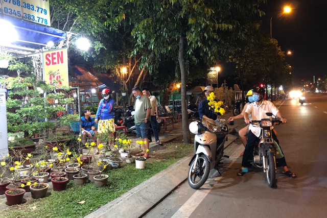 Trên đường Phạm Văn Đồng (TP Thủ Đức), một trong vài tuyến đường luôn luôn ken đặc người từ ngoại thành vào trung tâm trong đêm giao thừa những năm trước, nay lại vắng vẻ đến không ngờ. Thỉnh thoảng mới có vài xe chạy qua đường này, chủ yếu là những người nghỉ tết muộn, tranh thủ ghé vào các vựa bán hoa dọc vỉa hè để sắm hoa Tết muộn.
