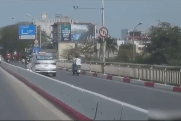 Theo đoạn clip, một nam thanh niên đang điều khiển xe máy chạy với tốc độ "bàn thờ", lạng lách, tạt đầu nhiều phương tiện trên đường. Ngay sau đó, chiếc xe máy này bất ngờ lao thằng vào chiếc ô tô đang rẽ.