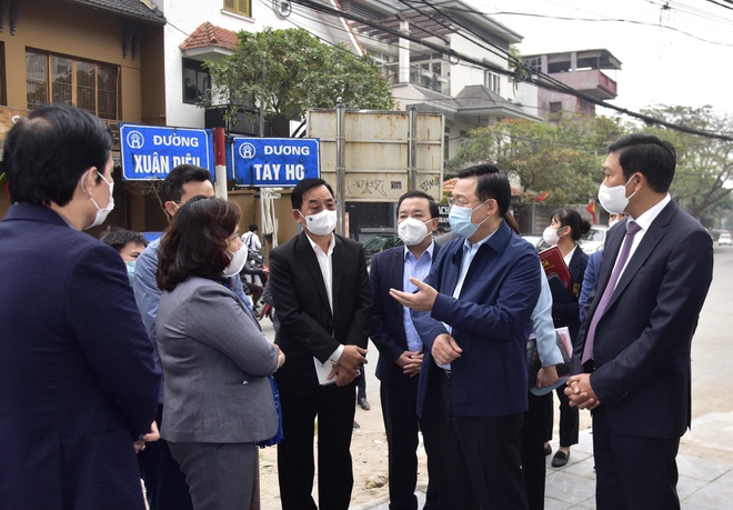 Chiều 16/2, Bí thư Thành ủy Hà Nội Vương Đình Huệ kiểm tra công tác phòng, chống dịch Covid-19 tại khu vực khách sạn Somerset WestPoint ở phường Quảng An, nơi đang được phong tỏa do phát hiện 2 người Nhật Bản mắc Covid-19 (bệnh nhân số 2229 và 2240).
