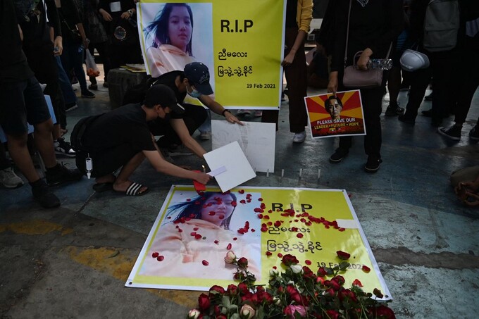 Mya Thwate Thwate Khaing, 20 tuổi, tử vong hôm 19/2 sau 10 ngày điều trị tại bệnh viện vì bị bắn vào đầu khi tham gia biểu tình phản đối đảo chính ở thủ đô Naypidaw, Myanmar. Đây là người biểu tình đầu tiên thiệt mạng từ khi phong trào chống đảo chính tại Myanmar bắt đầu.