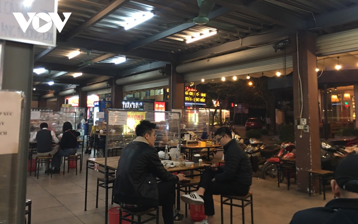 Chị Thúy, quản lý nhà hàng Minh Khanh (Hà Đông) cho biết: "Quán bia chúng tôi mở cửa phục vụ khách xuyên Tết, ngay sau khi có chỉ đạo phòng chống dịch Covid-19 của UBND TP. Hà Nội, với kinh nghiệm trong các đợt dịch trước, chúng tôi cũng chấp hành thực hiện thông qua việc kê bàn ghế cách xa nhau, tạo các vách ngăn trên bàn ăn, yêu cầu khách giãn cách tối thiểu 2m".