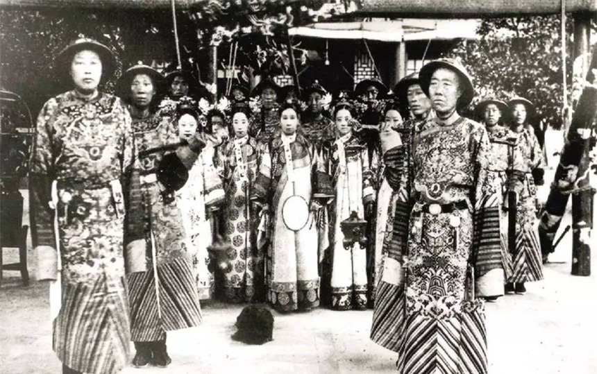 Từ Hi (ở giữa, cầm quạt) cùng một số phi tần và thái giám ở Di Hòa Viên. Ảnh:SCMP.