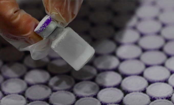 Nhân viên y tế cầm lọ vaccine Covid-19 được trữ đông tại trường đại học ở Kawasaki, Nhật Bản, ngày 27/1. Ảnh: Reuters