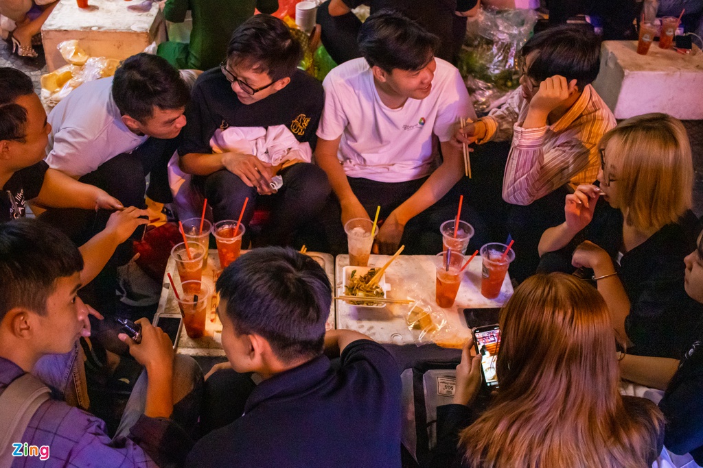 Thanh Ngân (24 tuổi, quận 3) kể thường ghé quán quen ở vỉa hè Đông Du sau những ngày bận rộn để thưởng thức combo tré trộn - trà dâu. Biết quán từ ngày còn là sinh viên, cô thường hẹn bạn bè tới đây để trò chuyện, thư giãn.