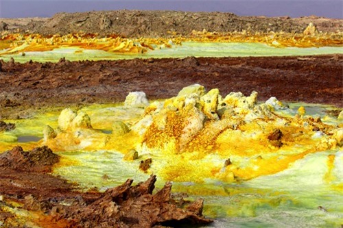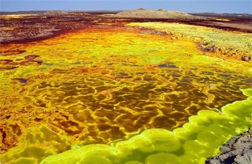 Nằm cách khoảng 600km về phía bắc của thủ đô Addis Ababa (Ethiopia), Danakil Depression tự hào là suối nước nóng có nhiệt độ gần với điểm sôi, giàu clo và lưu huỳnh độc hại - đến mức có thể làm khô phổi của bạn và khiến không khí nồng nặc mùi thối.Và nước muối magma nóng chảy là một cơn ác mộng, thiêu đốt võng mạc mắt với những sắc thái của màu vàng neon.