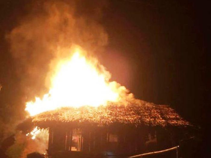 Phát hiện sự việc, bà con dân bản hô hoán người dân tập trung chữa cháy nhưng ngọn lửa nhanh chóng bốc cao, thiêu rụi toàn bộ ngôi nhà bằng gỗ.