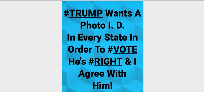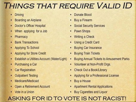 Không được! Check voter ID? Làm như vậy thì muốn ăn gian phải tốn rất nhiều tiền. Như thế là vi hiến. Ăn gian không cần phải tốn nhiều tiền như vậy. Mình phải trả tiền cho mổi thằng xét ID. Nếu trên ID có hình con chó thì cho nó vô đi bầu, còn hình con dán thì phải bắt nó về chụp hình lại. Chúng ta phải ra luật làm sao để dể ăn gian, như luật HR1 chẳng hạn. Thế mới tốt chứ. Thằng nào ăn gian giỏi nhất thì thằng đó thắng, thế mới công bằng chứ, phải không các đồng chí, ủa quên, xí lộn, tôi muốn nói là phải không các bạn.