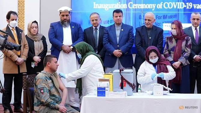 Thành lực lượng an ninh Afghanistan được tiêm những liều vaccine COVID-19 đầu tiên từ Ấn Độ, tại Kabul, ngày 23/2/2021. Ảnh: Reuters