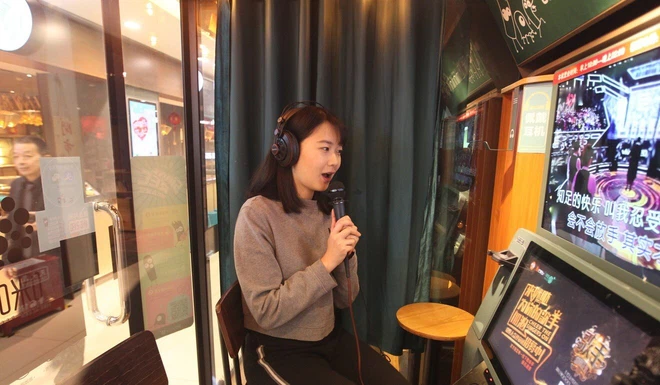 Một người hát ở trung tâm thương mại tại Bắc Kinh, Trung Quốc. Ảnh: SCMP