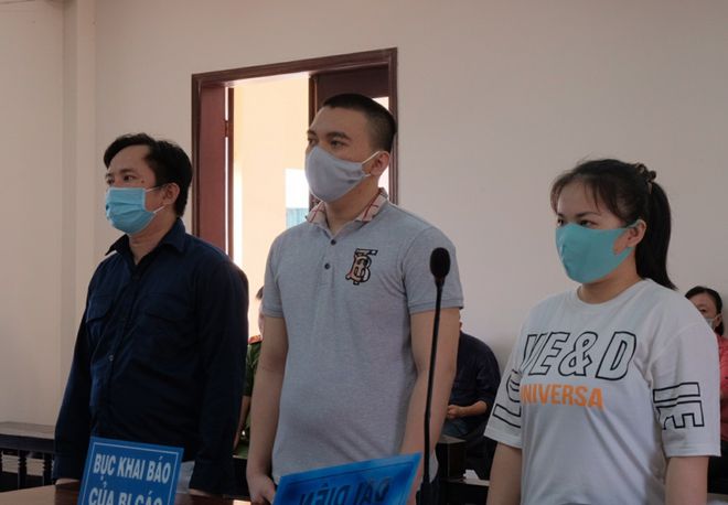 Ba bị cáo Dũng, Huyền, Khang tại phiên tòa xét xử