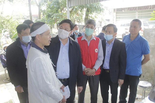 Phó Chủ tịch UBND tỉnh Thanh Hóa Mai Xuân Liêm thăm hỏi động viên gia đình nạn nhân Phạm Thị Bích ở bản Cảy, xã Trí Nang.