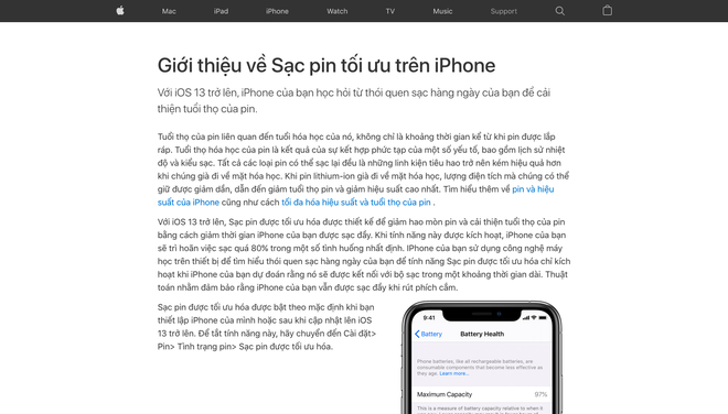 Apple chính thức lên tiếng về việc "duy trì trạng thái sạc đầy trong thời gian dài, sức khỏe pin có thể bị ảnh hưởng", điều này có nghĩa là giữ pin ở mức 100% liên tục không tốt cho iPhone đang khiến cộng đồng mạng xôn xao. Vì người dùng iPhone thường có xu hướng sạc pin qua đêm, sạc pin trước khi đi ngủ sau một ngày dài để sáng mai ngủ dậy là máy đã đầy 100% và việc này đi ngược với lời khuyên.
