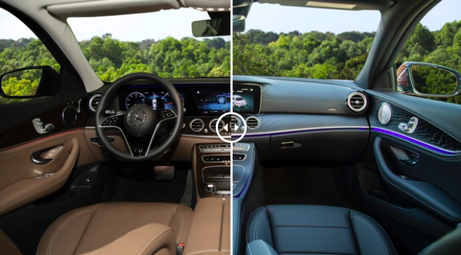 Vô-lăng ba chấu mang đến sự cách tân trong nội thất của E-Class 2021 và trên cả hai phiên bản đều được bọc da nappa, điều khiển bằng nút cảm ứng. Bảng đồng hồ kỹ thuật số 12,3 inch, hệ thống giải trí MBUX mới cho phép người dùng điều khiển qua màn hình cảm ứng, giọng nói, nút cảm ứng trên tay lái hay bàn rê touchpad.