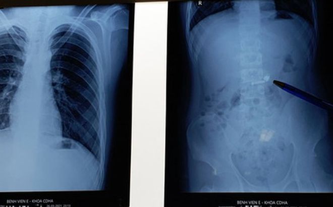 Thời gian qua, Bệnh viện E Trung ương đã tiếp nhận rất nhiều trường hợp bệnh nhi nhập viện do nuốt phải dị vật như: đồng xu, cúc áo, hòn bi, hòn đá, móng tay, đinh vít, kẹp ghim, các bộ phận của những món đồ chơi, pin tiểu… Khi trẻ nuốt phải dị vật nguy cơ cao nhất có thể gặp phải là tử vong hoặc bị chết não do dị vật chèn kín đường thở. Các dị vật còn có thể gây các biến chứng nguy hiểm như viêm phổi, viêm ổ bụng.