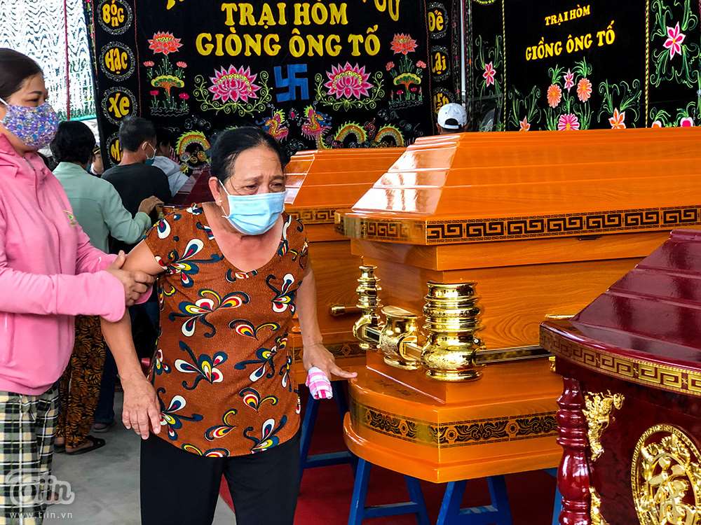 Trong ảnh là bà Võ Thị Biết (mẹ vợ ông Tâm) khóc ngất vì sự mất mát quá lớn. Chỉ trong một đêm mà con gái và cháu của bà đã không còn nữa…