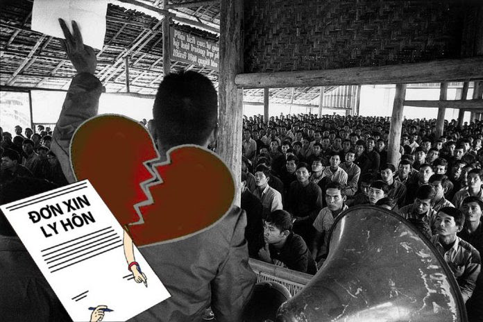 Tôi nghe như có tiếng lùng bùng trong lỗ tai, sao lại có chuyện lạ đời như vậy. Cái thằng Thượng úy VC này đã lấy vợ người lại còn dám vác mặt ra đây để đòi nó ký giấy ly hôn. Mấy lần thăm nuôi trước chỉ có mẹ già từ Sài Gòn ra thăm không thấy vợ đi thăm tôi đã có cảm nhận mơ hồ về điều gì đó không tốt sẽ xảy ra, mẹ tôi chỉ nói vợ nó bận làm ăn không đi được và tôi tin như vậy nên càng thương nhớ vợ tôi vô cùng.