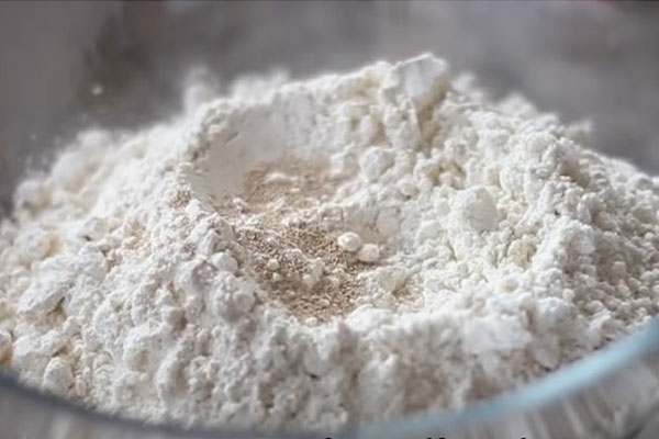 Phần bột 1: Cho vào âu 260g bột bánh mì cùng 5g men instant, trộn đều.