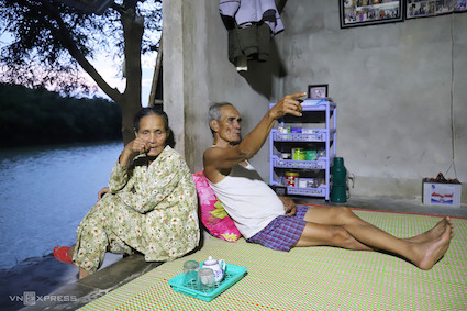 Sau bữa cơm chiều, hai vợ ông Đáp thường ngồi trước căn nhà để trò chuyện và ngắm đàn cò kiếm ăn trở về.