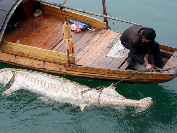 Xác một con cá tầm Trung Quốc khổng lồ được phát hiện trên sông Dương Tử năm 2007. Ảnh: Reuters